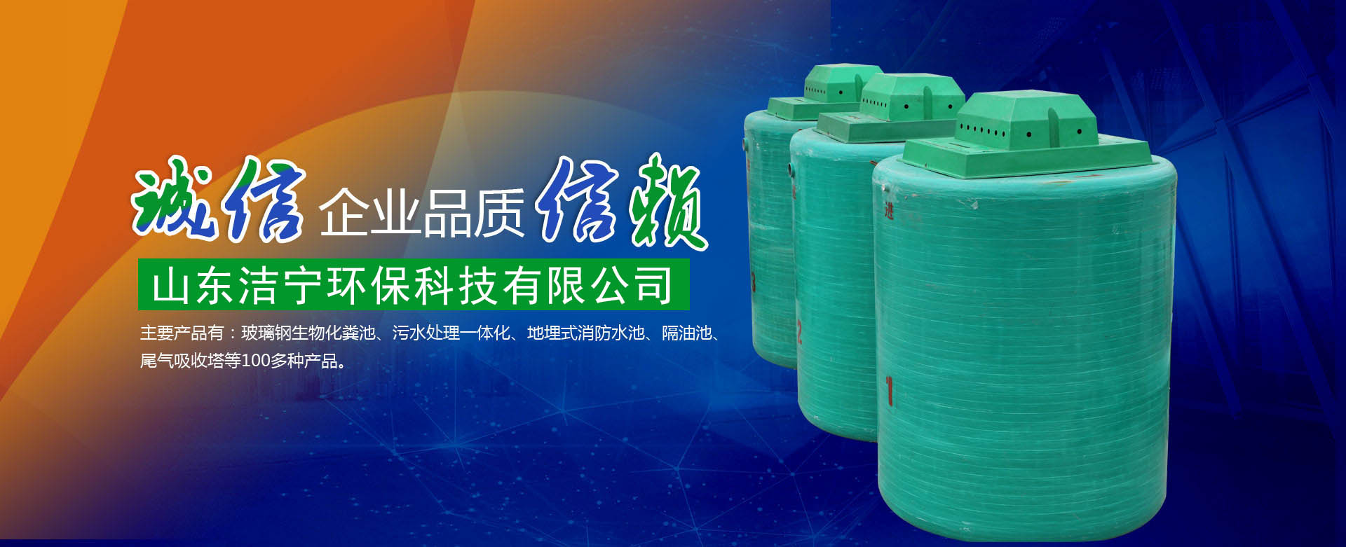本公司主要生產的產品有:玻璃鋼生物化糞池、污水處理一體化、地埋式消防水池、隔油池、尾氣吸收塔等100多種產品,產品覆蓋20多個省市自治區。